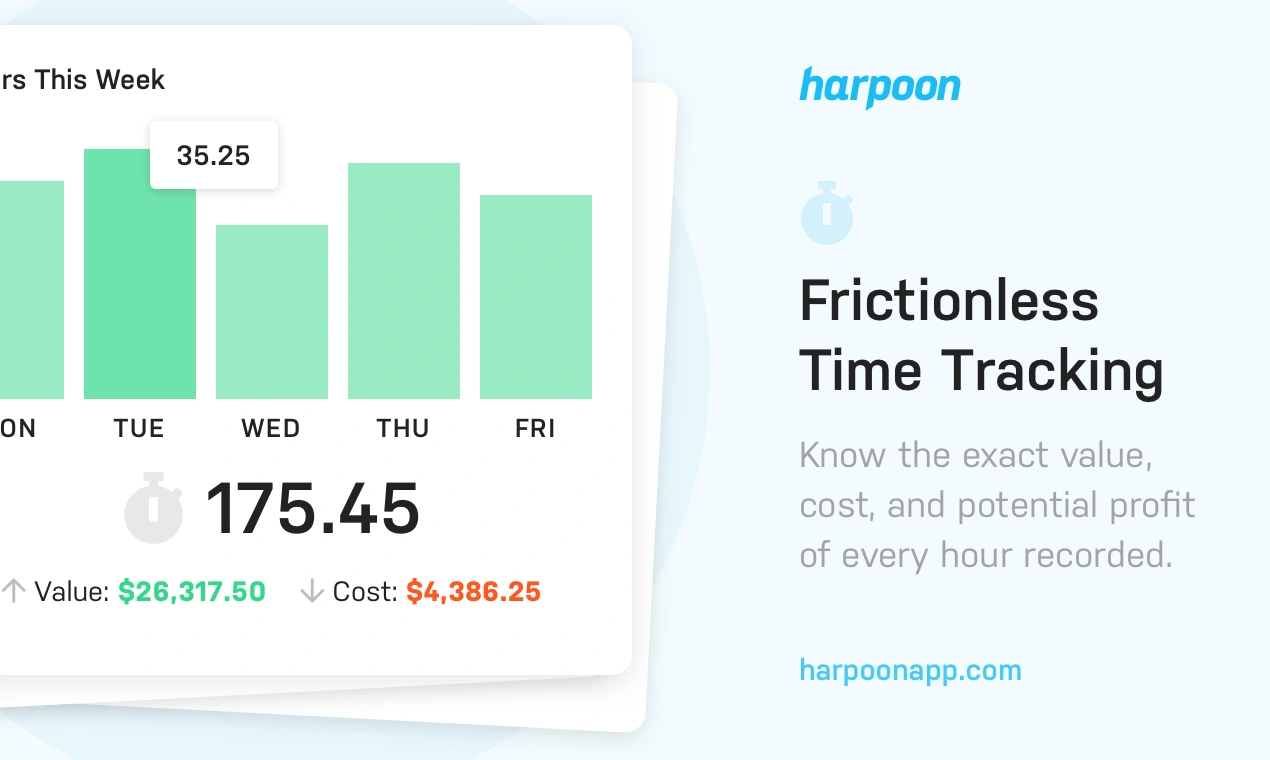 No other time-tracking or invoicing software helps you plan and predict a profitable future for your business like Harpoon does. Try it risk-free for 14 days.